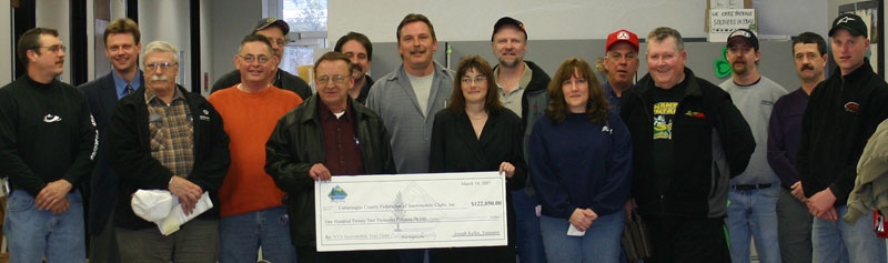 Snowmobile Club Representatives and Officials holding the $122,050.00 check from the New York State Office of Parks, Recreation and Historic Preservation